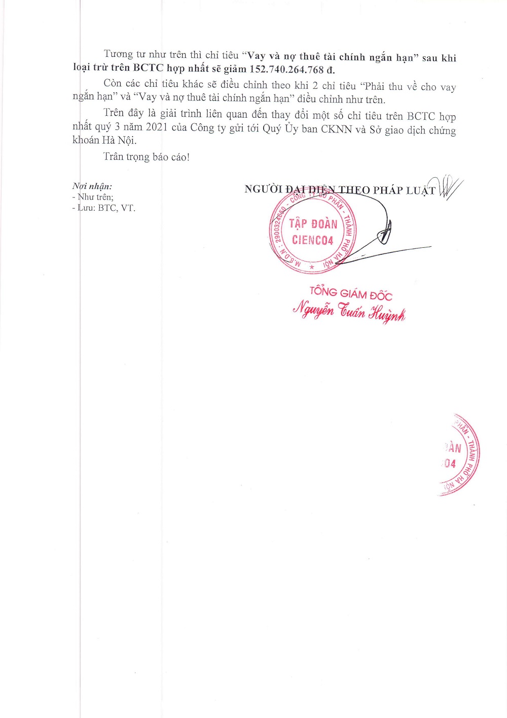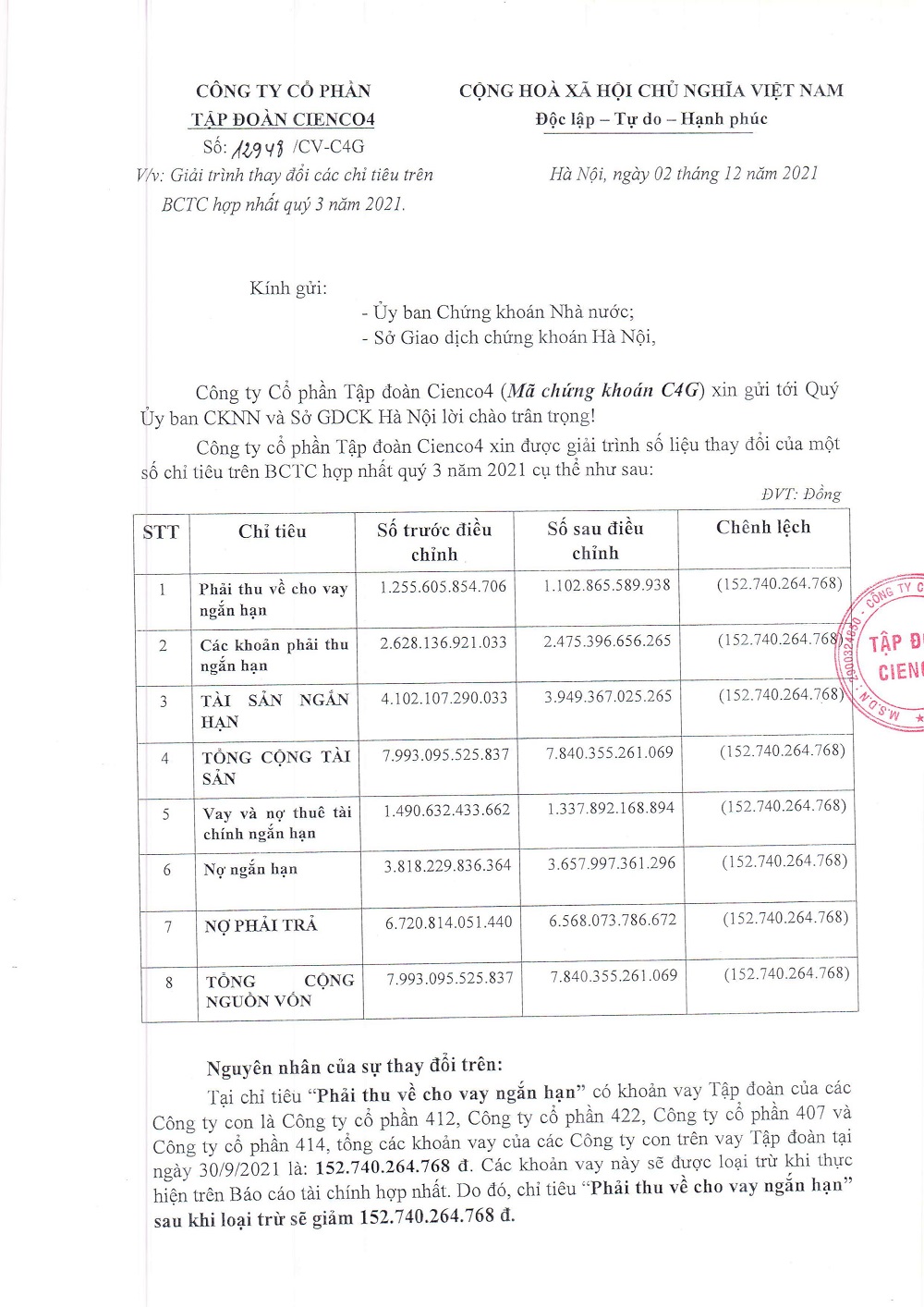 Báo cáo Tài chính Hợp nhất Quý 3 năm 2021 sau điều chỉnh