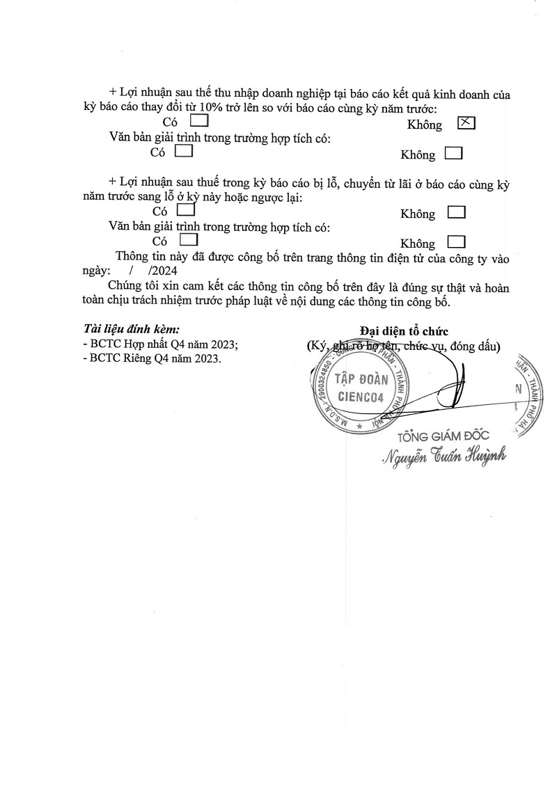 Báo cáo tài chính quý 4 năm 2023