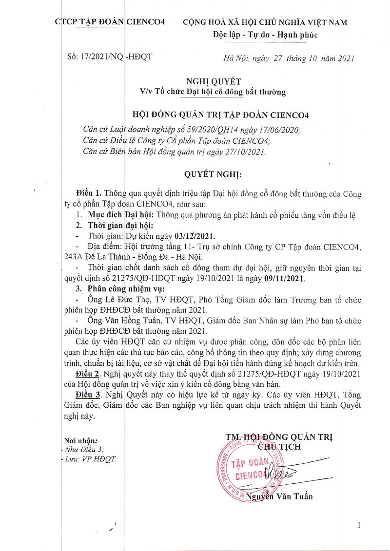 CBTT Nghị quyết của HĐQT v/v ký kết hợp đồng, giao dịch với các bên liên quan của Tập đoàn