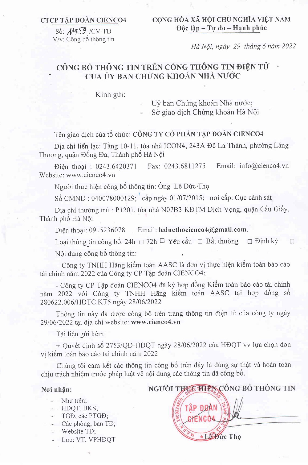 CBTT Đơn vị kiểm tóan BCTC năm 2022