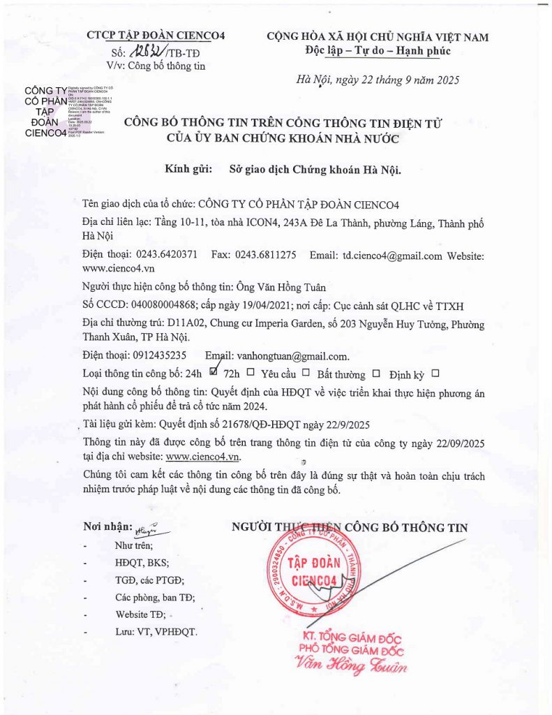 CBTT Quyết định của HĐQT v/v triển khai thực hiện phương án phát hành cổ phiếu để trả cổ tức năm 2024