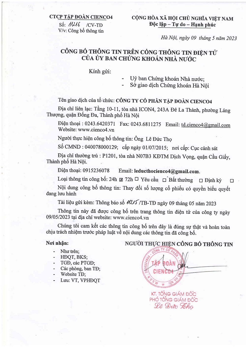 CBTT Thay đổi số lượng cổ phiếu có quyền biểu quyết đang lưu hành