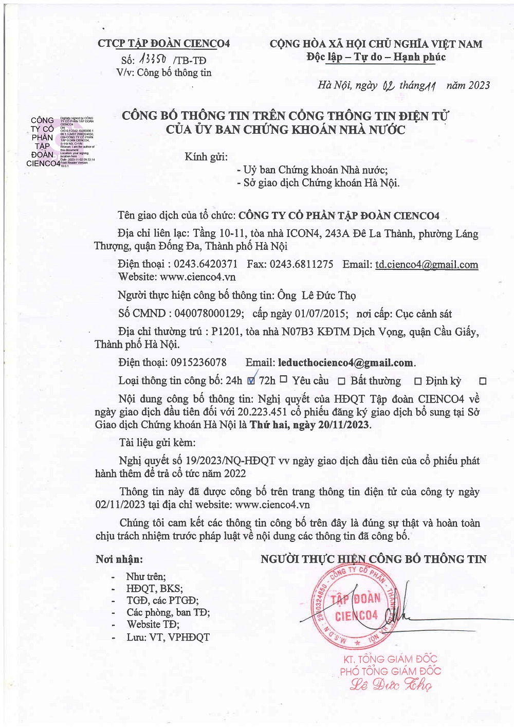 Nghị Quyết v/v ngày giao dịch đầu tiên của cổ phiếu phát hành thêm để trả cổ tức năm 2022