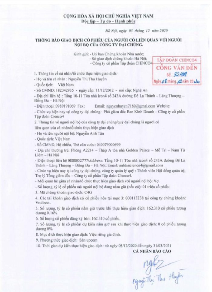 Thông báo giao dịch cổ phiếu của người có liên quan đến người nội bộ của công ty đại chúng