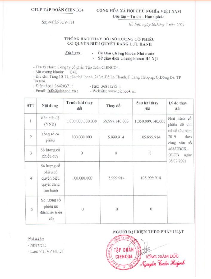 Thông báo số lượng cổ phiếu có quyền biểu quyết đang lưu hành