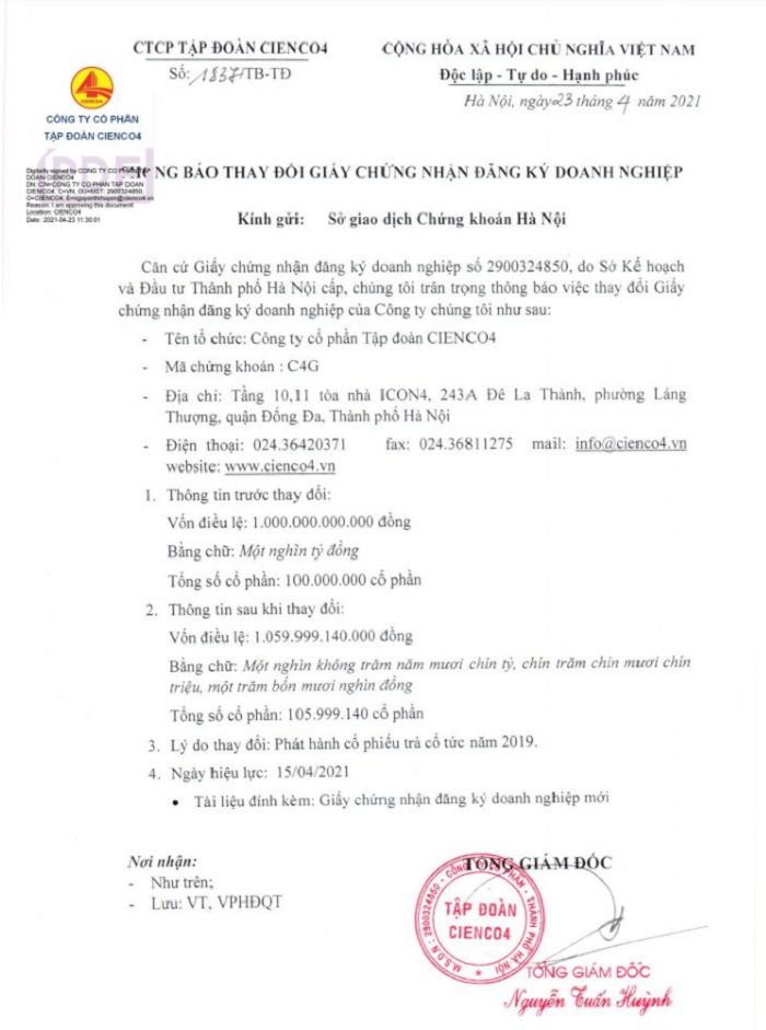 Thông báo thay đổi giấy chứng nhận đăng ký Doanh nghiệp